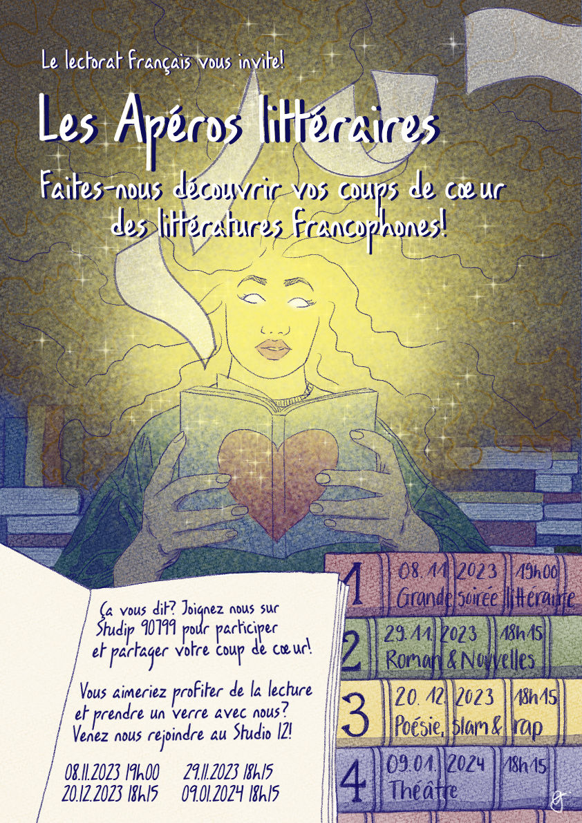 Am 20.12.2023 findet der dritte Apéro littéraire im Studio 12 statt; diesmal zu „Poésie, slam & rap“ (siehe Plakat).
