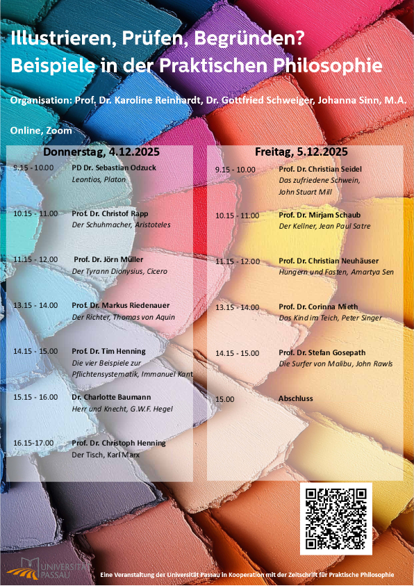 Im Rahmen der Tagung werden zentrale Beispiele der Praktischen Philosophie vorgestellt, interpretiert, kritisiert und auf ihren historischen Einfluss befragt. Alle Interessierten sind herzlich willkommen.