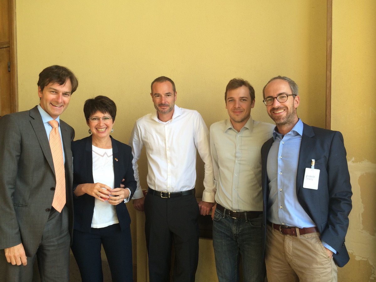 (Das Foto zeigt von links nach rechts Christoph Barmeyer, Catherine Teissier, Sebastian Hüsch, Andreas Landes, Sebastian Öttl)