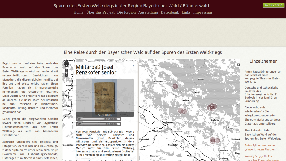 Das Projekt umfasste die Ausstattung eines standortübergreifenden Labores für Digital Humanities mit den beiden Standorten Budweis (CZ) und Passau, welches nachfolgend grenzüberschreitend für die Realisierung der beiden Forschungsvorhaben Digitalisierung historischer Zeitungen (DhZ) und Feldforschung zum Ersten Weltkrieg genutzt wurde.