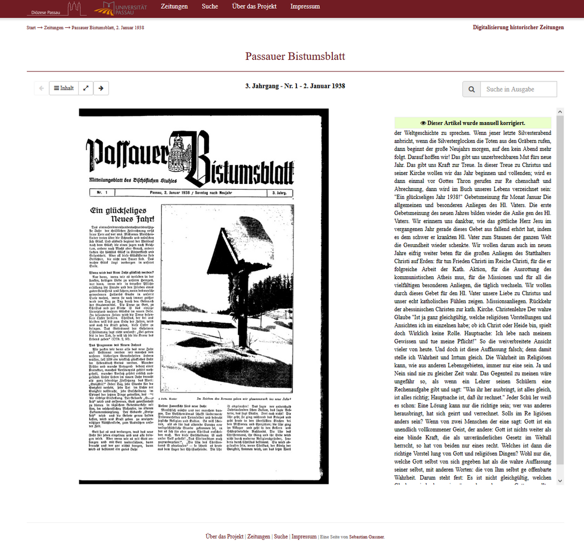 Das Projekt ermöglicht der Bevölkerung, als auch WissenschaftlerInnen, den Zugang zu einem wichtigen Stück Passauer Zeitgeschichte. Bemerkenswert ist, wie die Redakteure des "Passauer Bistumsblattes" unter strengsten Zensurbedingungen während der NS-Zeit eine katholische Zeitschrift herausgeben konnten. Die Jahrgänge 1936-1941 wurden durch das Archiv des Bistums und des Lehrstuhls für Digital Humanities der Uni Passau digitalisiert und für weitere Analysen aufbereitet.