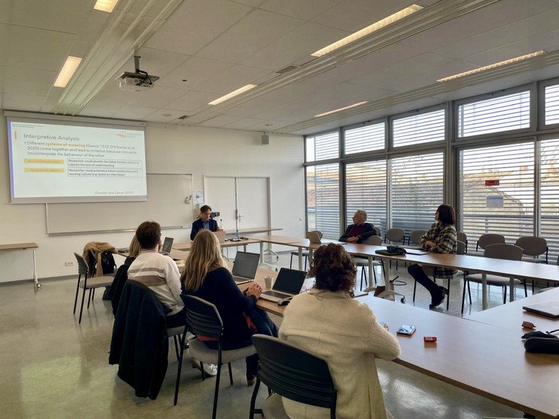 As part of the Erasmus exchange, Dr. Emmanuelle Sauvage, IAE (University School of Business) / Université de Bordeaux, spent several days at the University of Passau and gave various lectures. Dr. Emmanuelle Sauvage is Maître de Conférences (Associate Professor) for International and Intercultural Management, heads the Master's program IBM “International Business Management” and is a member of the research center IRGO (Institut de Recherche en Gestion des Organisations). In the lecture on May 5, 2025 entitled “Born into Babel: Do Early Cross-Cultural Lives Shape Us?” she dealt with the question if people born in intercultural contexts or who have been confronted early on with a family cultural plurality have specific skills. As part of the doctoral colloquium of the Chair of Intercultural Communication, Dr. Sauvage gave a lecture on May 6 on the particular anthropological approach to culture of Philippe D'Iribarne (Gestion & Société) and its place within the landscape of paradigms. She also presented the methodological dimension of her research: “The characteristics, major challenges, and limitations of conducting interviews in an international context.”On May 7, she gave a talk on “Interactions and interrelations in multicultural environments: what does understanding you really mean?” In sum, Dr. Sauvage gave inspiring insights into her research to students and doctoral candidates. Her stay is linked to a joint publication project with Professor Barmeyer and a long-standing partnership between the two universities. Students are invited to spend an Erasmus semester in Bordeaux.