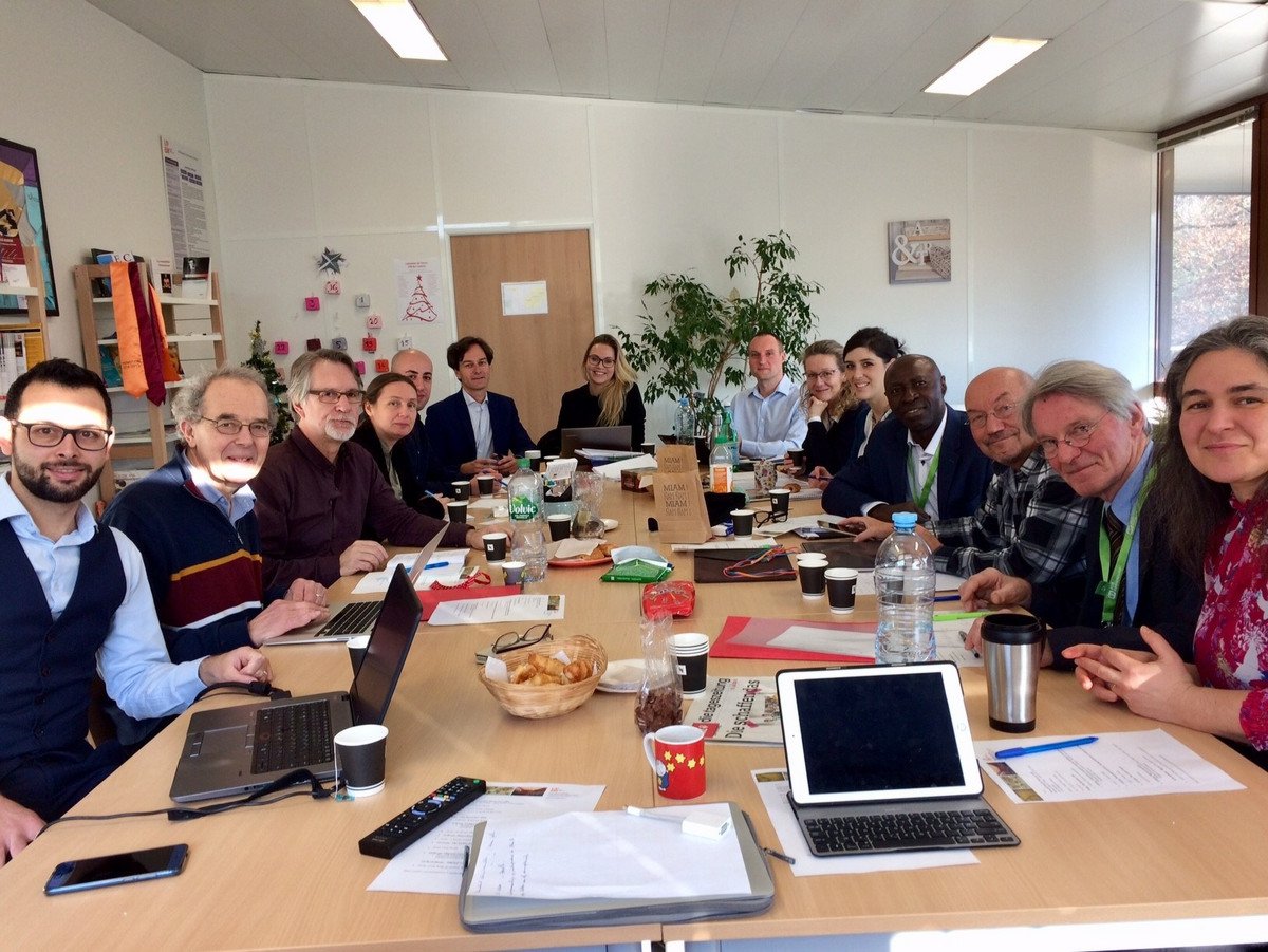 The photo shows Professor Davoine (2nd from left) with the Chair staff, as well as internal and external doctoral students at the doctoral seminar on 2nd May 2018.