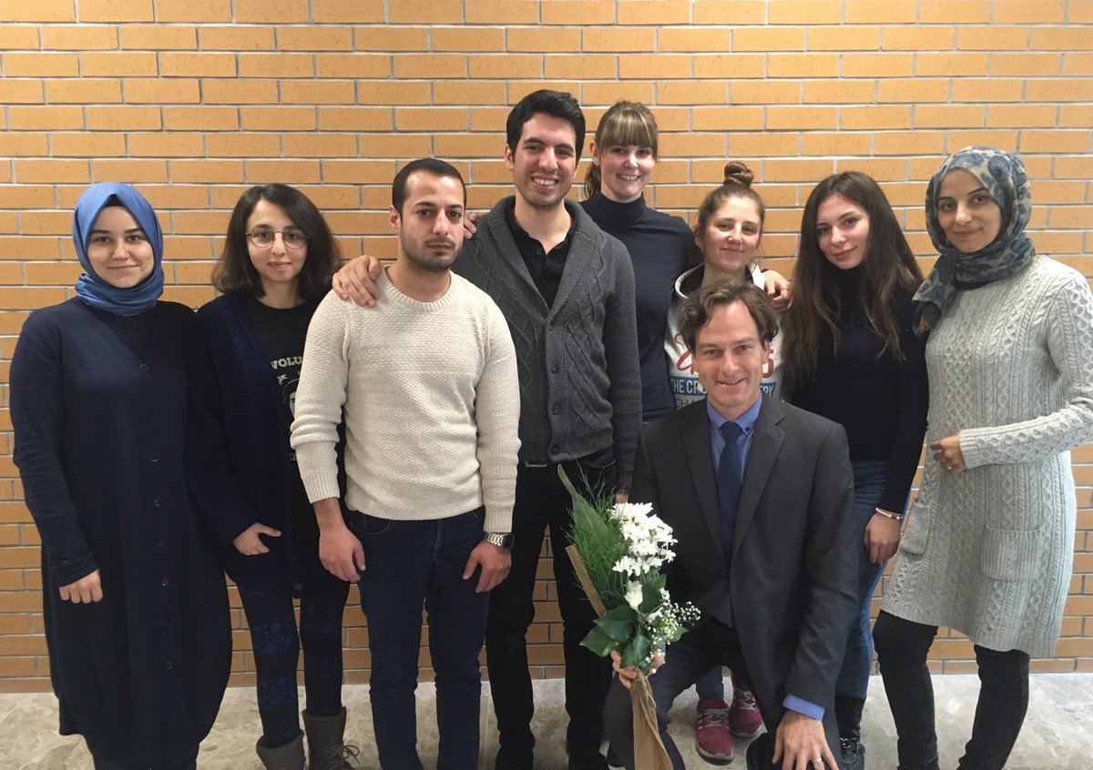 Once again, Professor Barmeyer spent a week (19th to 23rd November 2018) at the Turkish-German University in Istanbul to work on interculturality and biculturalism together with the students of the master's degree programme 'Intercultural Management’ from both a theory-based and an applied perspective. The focus was on taking a non-judgmental meta level, and constructively shaping intercultural relations. At the end, Professor Barmeyer received a gift from the students, in keeping with the 'Turkish Teachers' Day': this day, introduced by President Mustafa Kemal Atatürk on the 24th November 1928, has been celebrated ever since to thank teachers for their efforts in the service of education and training.