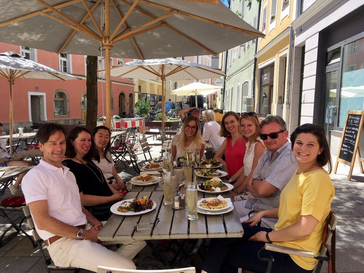 The Chair of Intercultural Communication celebrated almost 11 years since its foundation on the 18th and 19th May 2019. Together with 25 former and current employees as well as friends of the Chair, participants shared past and current experiences at the Chair on the Saturday morning. There was also a moderated exchange about plans for the future and professional careers. This was followed by a scavenger hunt through Passau and a dinner with a photo presentation and the results of the scavenger hunt, including research ideas and photos of special places during the respective periods of the Chair’s history. The slogan: 'Vorsprung durch Interkulturalität' arose in this context. <br/> The Sunday morning started with beautiful weather and a yoga class at Ortspitze, and continued after a communal breakfast: a team of six successfully participated in the 20th Passau Cathedral Run (see 'Running Culture' section). That brought the beautiful festive weekend to an end. Many thanks for participating in such numbers and for cheering the runners on.