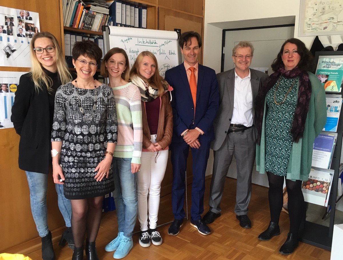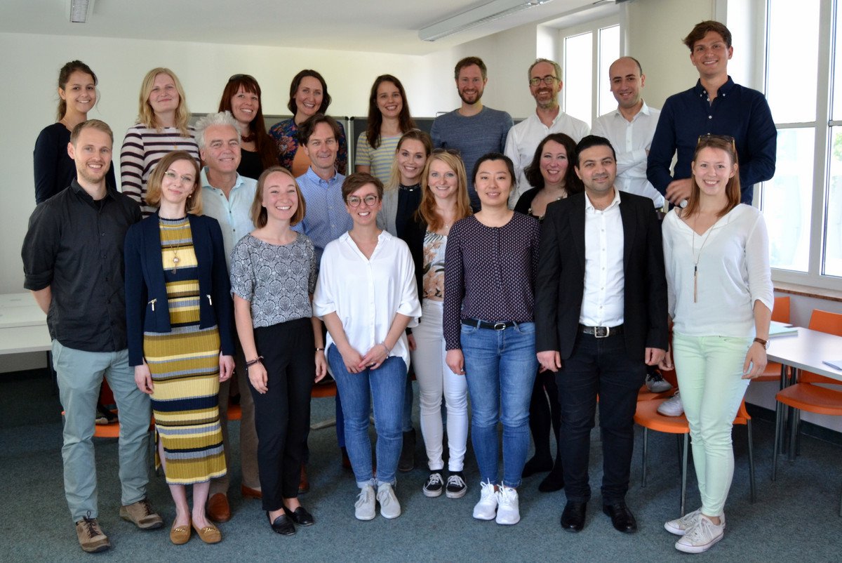 From the 23rd to the 24th July, the Chair of Intercultural Communication welcomed Prof. Peter Franklin of HTWG Konstanz to the Chair (from the front, second person on the right in the picture). Prof. Franklin gave the doctoral students valuable advice and inspiration for their research projects, and gave a talk on 'Intercultural competencies: What are they, to what extent can they actually be developed and are they themselves culturally influenced?' during the lecture on intercultural management. His talk covered a differentiated, practice-oriented view of intercultural competences and intercultural competence development, and examined the extent to which the conception of these competences and their development are themselves influenced by culture.
