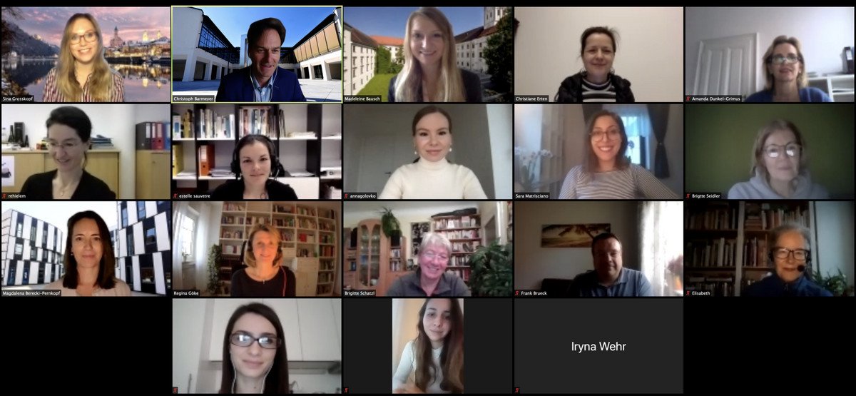 On November 12 and 13, 2020, Professor Barmeyer and the PhD candidates Madeleine Bausch and Sina Grosskopf were virtually represented at the Vienna University of Economics and Business Administration. In the evening of November 12, they gave three lectures on the topic of Constructive Intercultural Management as part of the weekly Linguistics Circle: Professor Barmeyer on intercultural negotiation in a German-French organization, Madeleine Bausch on the transfer of quality management practices between Germany and Brazil, and Sina Grosskopf on biculturalism as a resource for organizations. After the individual presentations there was time for discussion and a lively exchange about interculturality with the participants.