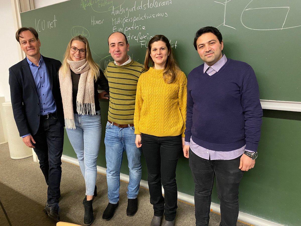 As part of the Bachelor lecture Introduction to Intercultural Communication and Intercultural Management (8.01.2020) Prof. Dr. Barmeyer and Sina Grosskopf conducted a group interview with three Syrians living in Passau: Rama Suleiman, Anas Alhashmi and Maher Qawas. The interview referred to intercultural challenges in Germany and how to deal with them. This included conscious reflection on one's own socialization in two different cultural systems, the Syrian and the German. Such individuals can be described as bicultural, i.e. they are shaped by different cultural and linguistic systems that unite them in their personality. What is particularly interesting here is that by combining the two cultures, they display a unique intercultural competence. They can use this to build bridges in different situations. They then adopt different perspectives and exhibit characteristics such as flexibility, openness, empathy or tolerance of ambiguity.