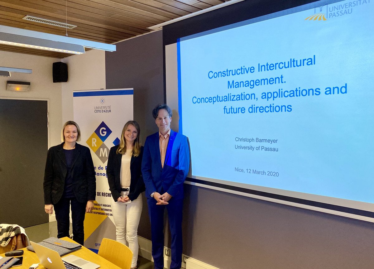 Between 9th and 14th of March 2020, co-authors Professor Christoph Barmeyer and Madeleine Bausch met with Professor Ulrike Mayrhofer in Nice at the IAE Nice, University of Côte d'Azur, to work on the English version of the textbook "Constructive Intercultural Management", which will be published by Edward Elgar in 2021.