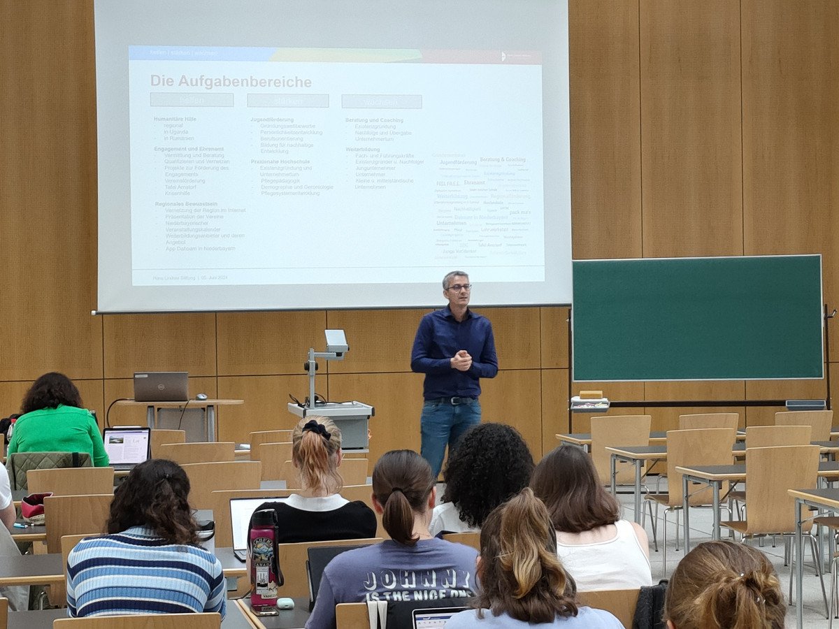 International activities of organisations are always subject to increased complexity. This applies to companies as well as non-profit organisations. Christian Schläger, Head of Youth Development at the Hans Lindner Foundation, answered the question of how foundation activities in Uganda need to be organised differently than in the German context. This has been a part of the lecture "Introduction to Intercultural Communication". Using the example of entrepreneurship funding, it became clear that the different cultural and institutional environment leads to a need for adaptation.