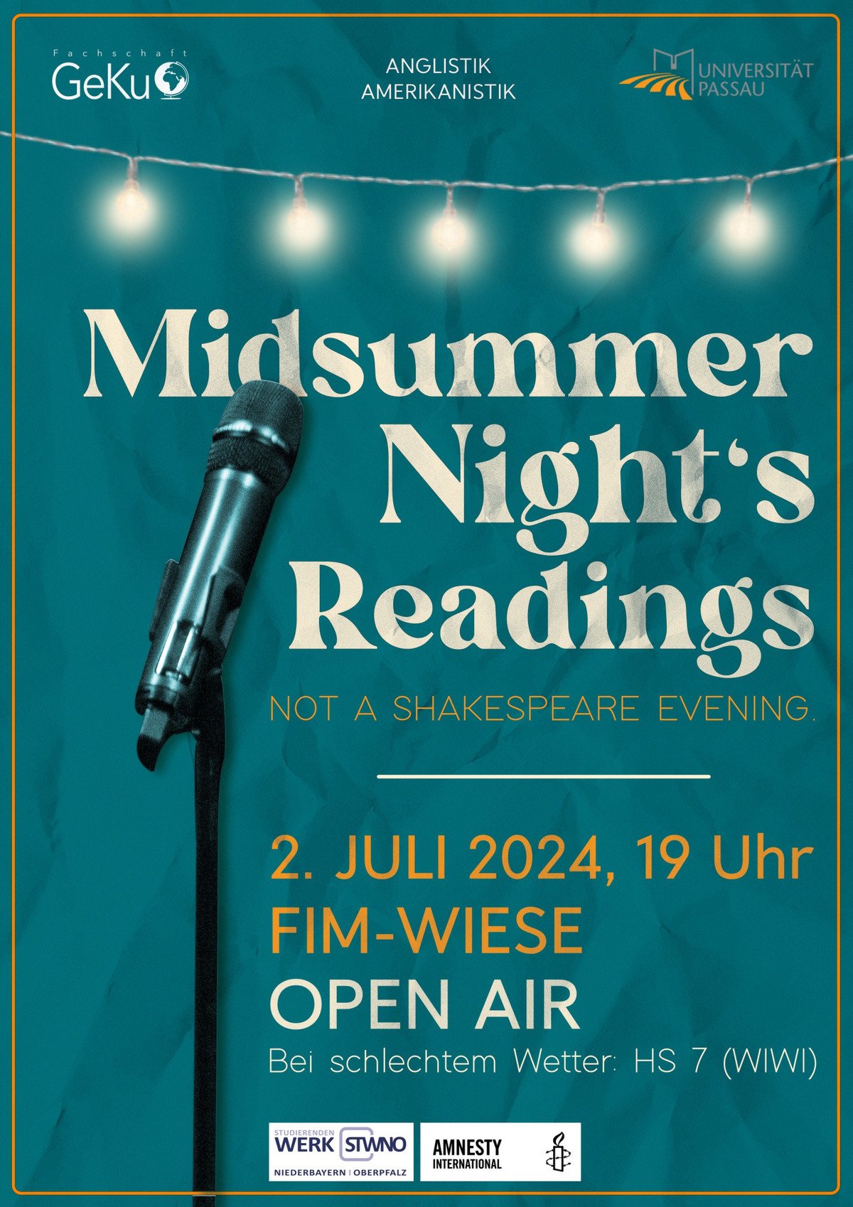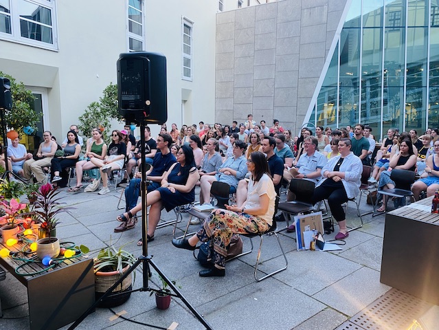We rounded off the term with this year’s Midsummer Readings, organised by Sarah Beyvers, Paul Hamann-Rose and members of the Fachschaft. A burst of unseaonal rain sent us indoors, but didn’t dampen the atmosphere in the slightest. Students and staff read favourite pieces of literature, the Hammerchor sang beautifully, and for the first time ever, we had the joy of celebrating the talent of the brilliant student participants in our newly set up Creative Writing Workshop, who read some of their own works to warm applause all around.