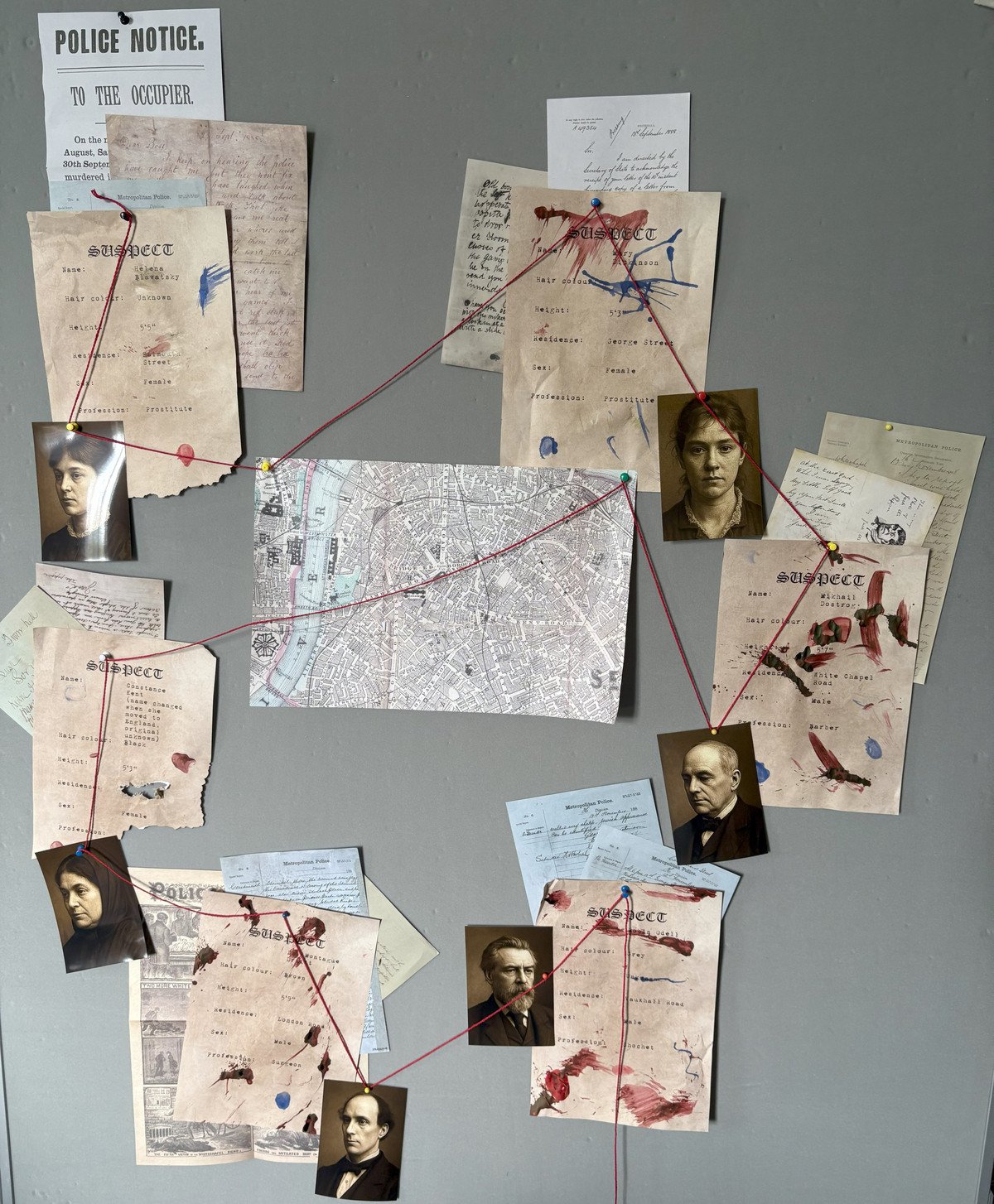 After encountering and discussing a range of examples of neo-Victorian fiction in class, students could freely choose a nineteenth-century literary work, event, character, or cultural context to work with and formed groups accordingly. Students planned as well as designed three escape rooms that adapted Victorian literary and cultural texts and contexts: Bram Stoker’s novel Dracula, Arthur Conan Doyle’s character Sherlock Holmes, and the case of Jack the Ripper. They then started creating a narrative frame for their escape game. One afternoon at the end of term, all three escape rooms were then played by the other two groups of students in turns, while the group that designed it watched from another room via webcam. With bated breath each group watched as their fellow students explored the room they had set up and solved the puzzles they had created.