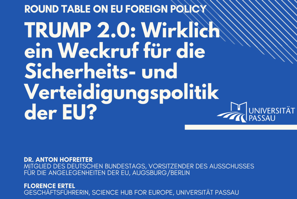 Im Namen des Science Hub for Europe und des Jean-Monnet-Lehrstuhls für Europäische Politik laden wir alle Interessierten herzlich zum nächsten Round Table on EU Foreign Policy am 22. Januar 2025 um 18.30 Uhr im Audimax…