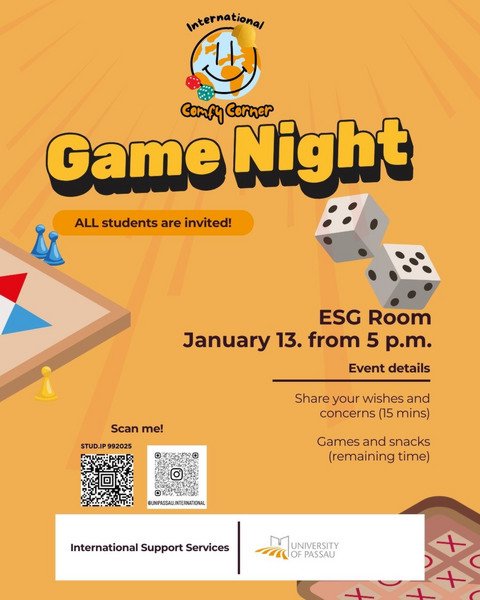 Come as you are, bringt eure Freunde und Freundinnen mit und genießt einen Abend voller Spiele, Gespräche und guter Vibes!