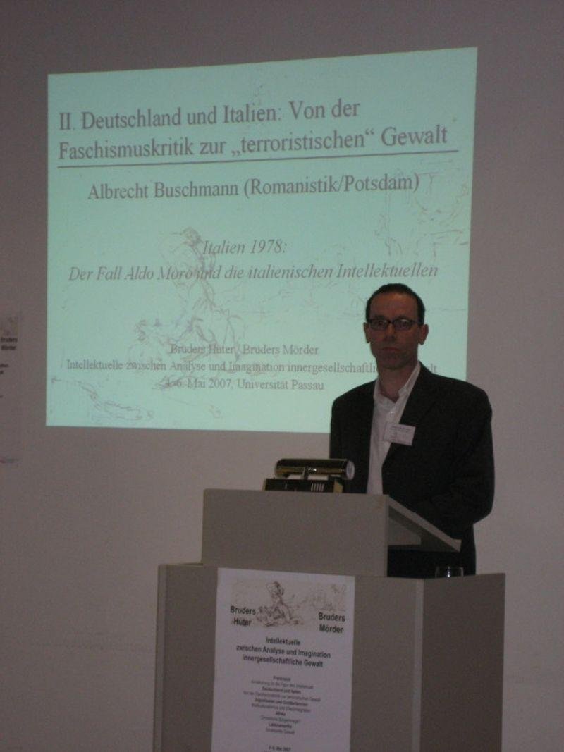 Im Sinne dieser Fragestellungen hatte die Tagung "Bruders Hüter/Bruders Mörder" zum Ziel, ausgewiesene Vertreter und Vertreterinnen kultur- und sozialwissenschaftlicher Disziplinen zur wissenschaftlichen Auseinandersetzung zusammenzuführen. Zentral ist dabei die Frage nach der Funktion von Intellektuellen im lokalen Rahmen wie innerhalb der "Weltgesellschaft", eine Funktion, die sich anhand von Stellungnahmen zu innergesellschaftlichen Gewaltkonflikten ab Mitte des 20. Jahrhunderts in Europa, Lateinamerika, Asien und Afrika skizzieren lässt. Es sollte gemeinsam herausgearbeitet werden, welche Kommunikationsmittel benutzt, welche Positionen bezogen und welche Sinnzuordnungen nahe gelegt werden, wie auch, wie Gewalt legitimiert bzw. delegitimiert wird. Schließlich galt die Tagung den übergreifenden Fragen danach, wie sich rationale Analyse, Zukunftsentwürfe und Denken von Alternativen, Imagination der Gesellschaft und öffentliche Meinung in Pressetexten, Essays, Fernsehen, Film, Theater, Sachbüchern und Fiktion zueinander verhalten und wie Intellektuelle als Konsequenz ihrer Beobachtung der innergesellschaftlichen Spaltung im Spannungsfeld zwischen Analyse und Imagination "handeln".