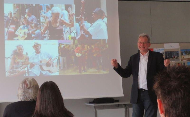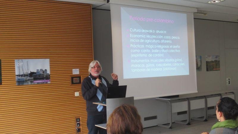 Prof. Dr. Mario Masvidal Saavedra (Universidad de las Artes in La Habana), Gastdozent an der Universität Passau, sprach zum Thema "música cubana" und stellte in einem historischen Überblick von der präkolumbischen Zeit bis zur Moderne die Entwicklung der kubanischen Musik und ihre Bedeutung für den kubanischen Alltag dar. Großes Staunen verursachte die Aussage, dass Rockmusik in den 60ern und 70ern verboten war.