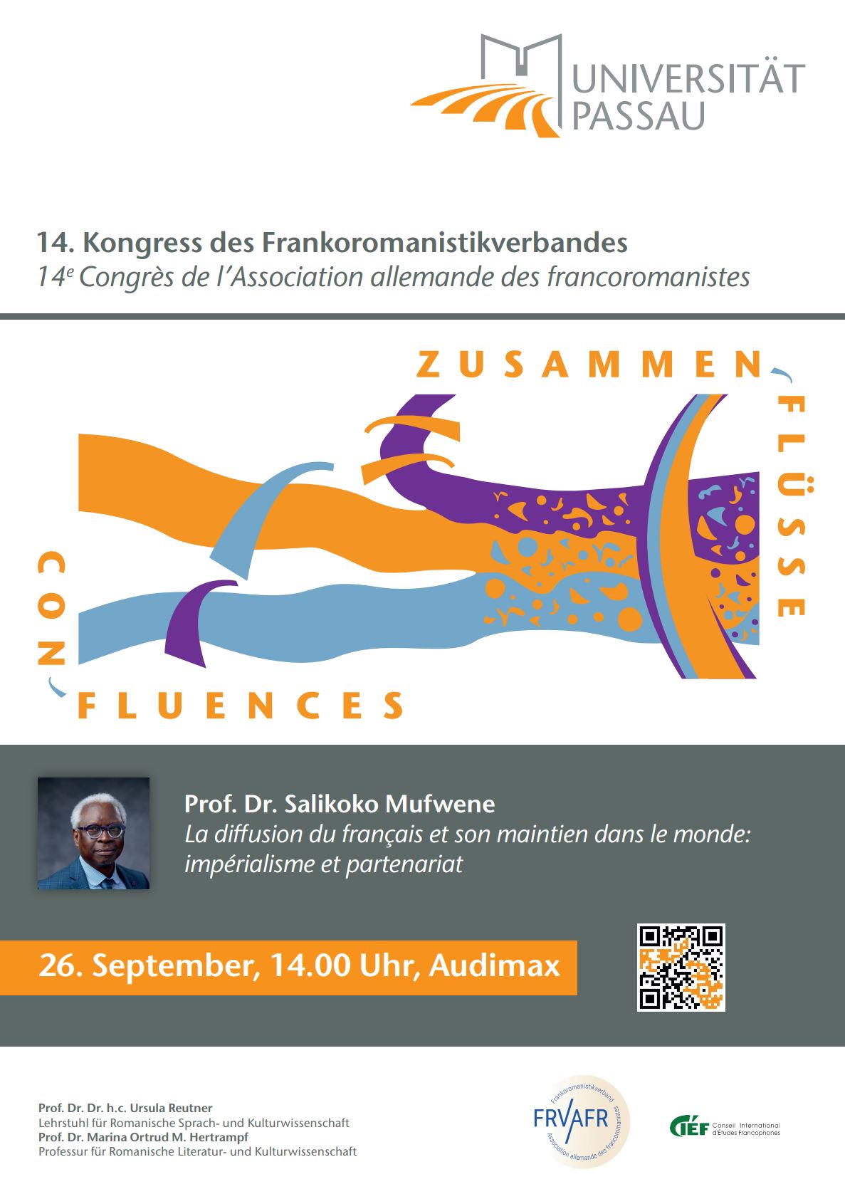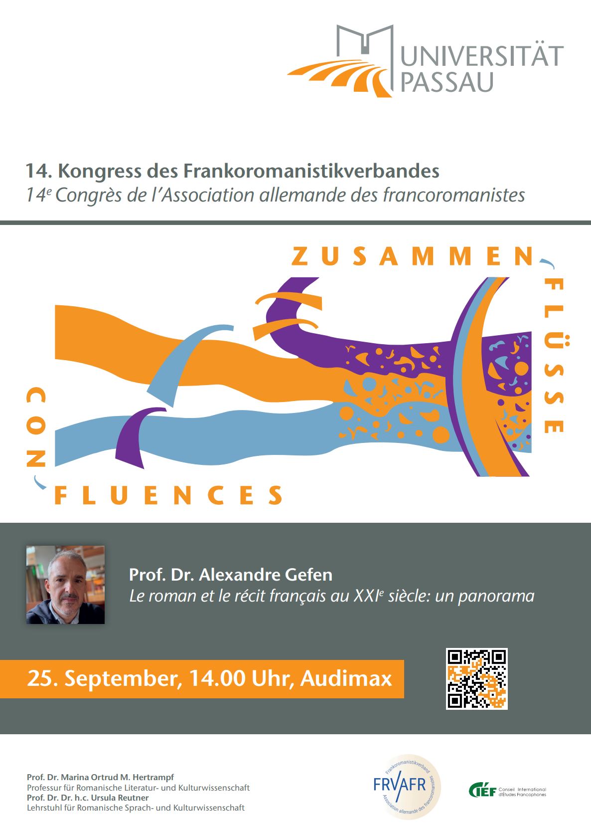 Der Frankoromanistiktag ist die wichtigste internationale Fachtagung der Frankoromanistik im deutschsprachigen Raum. Die Teams von Marina Hertrampf und Ursula Reutner organisieren den 14. Kongress unter dem Rahmenthema Confluences: croisements et convergences. Er findet vom 24. bis zum 27. September 2024 unter dem Dach des Frankoromanistikverbandes an der Universität Passau statt. Über 300 Gäste aus 16 Nationen diskutieren in 15 Sektionen Themen der Sprachdidaktik, Sprach-, Literatur- und Kulturwissenschaft.