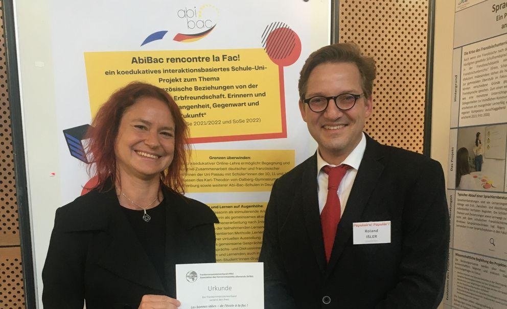 In Kooperation mit StR Franz Fischer, einem ehemaligen Passauer Lehramtsstudenten, ist die Professur im Herbst 2022 mit neu eingerichteten Preis „Les bonnes idées – De l’école à la fac !“ des Deutschen Frankoromanistenverbands für das Uni-Schul-Projekt „AbiBac rencontre la Fac! – Deutsch-Französische Beziehungen von der Erbfeindschaft zur Erbfreundschaft. Erinnern Gedenken in Vergangenheit, Gegenwart und Zukunft“ ausgezeichnet worden. Die Preisverleihung fand am 23. September im Rahmen des 13. Kongresses des Frankoromanistenverbands an der Universität Wien statt. Das Preisgeld wird für die Fortsetzung des Projektgedankens für zukünftige Uni-Schule-Projekte eingesetzt.